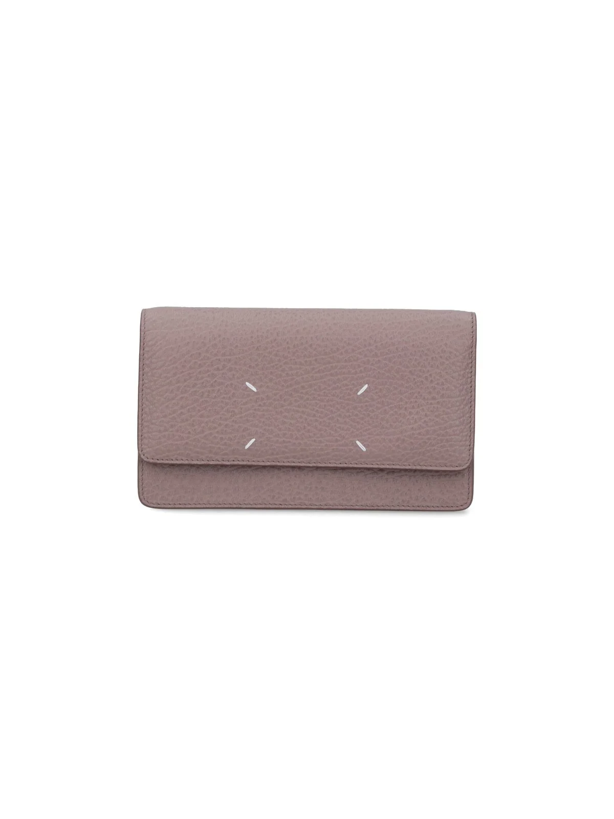 MAUVE GREY CALF LEATHER 'FOUR STITCHES' CHAIN WALLET, REMOVABLE LEATHER AND METAL SHOULDER STRAP, PRESS BUTTON FLAP CLOSURE, LOGO EMBROIDERY ON THE FRONT, INNER ZIP POCKET, SIX CARD SLOTS, MAIN INNER COMPARTMENT. PRODUCT INFO PRODUCT CODE SA3UI0008 P4455T2615 COMPOSITION: 100% CALF LEATHER SIZE AND FIT: H 11 X W 19 X D 4 CM MADE IN: ITALY