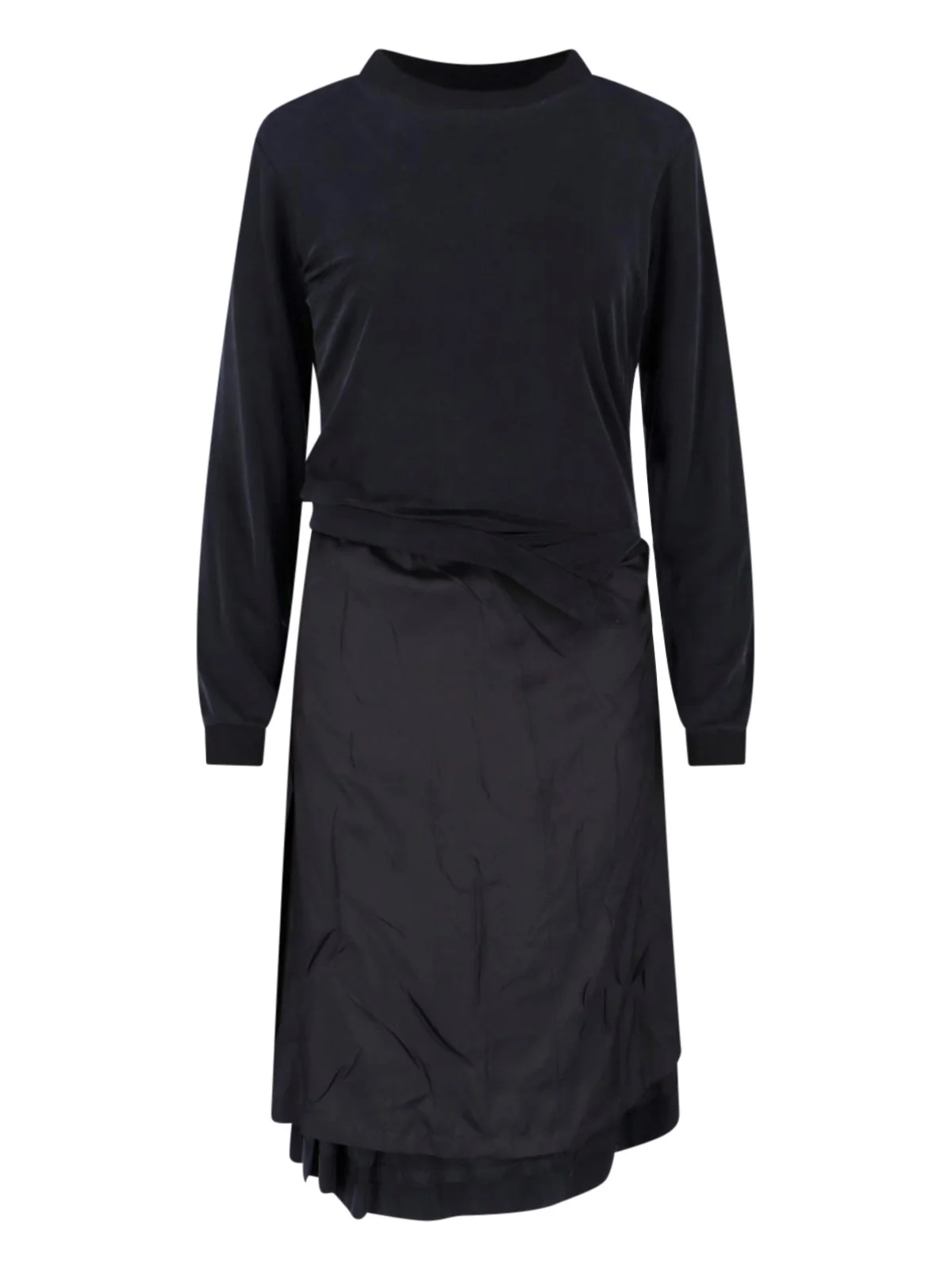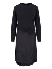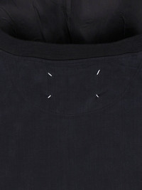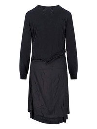 MAISON MARGIELA 'FOUR STITCHES' MIDI DRESS IN BLACK FABRIC WITH ROUND NECKLINE, LONG SLEEVES, SIDE ZIP CLOSURE AND BACK BUTTON, RIBBED CUFFS, 'FOUR STITCHES' LOGO EMBROIDERY AT THE BACK, ASYMMETRICAL HEM. PRODUCT INFO PRODUCT CODE S51DD0059 MTJ041900 COMPOSITION: 90% CUPRO, 10% ELASTANE SIZE AND FIT: REGULAR FIT MADE IN: ITALY