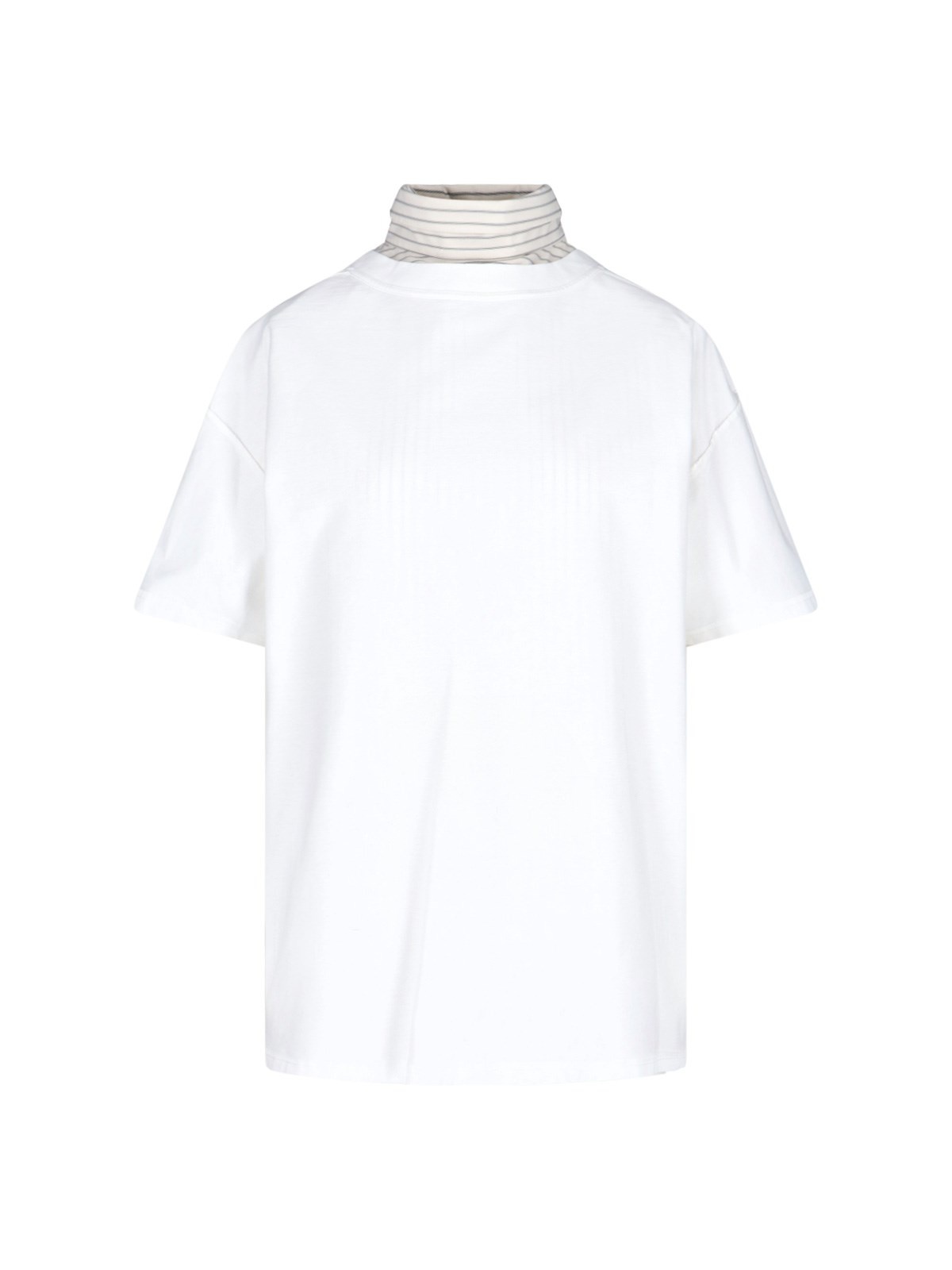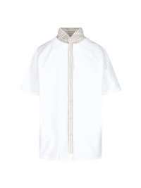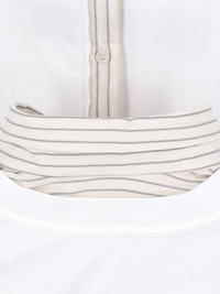 MAISON MARGIELA INVERTED SHIRT IN WHITE COTTON WITH BEIGE STRIPED DETAILS WITH CLASSIC INVERTED COLLAR, BACK BUTTON CLOSURE, THREE-QUARTER SLEEVES, STRAIGHT HEM. PRODUCT INFO PRODUCT CODE S51NF0003 MTJ031102 COMPOSITION: 100% COTTON SIZE AND FIT: REGULAR FIT MADE IN: ITALY