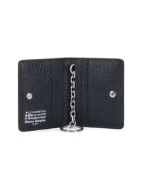 MAISON MARGIELA LEATHER CARDHOLDER, BLACK, BUTTON CLOSURE, INSIDE WITH LOGO LETTERING, VARIOUS SLOTS AND CHAIN WITH RING, BACK WITH ICONIC CONTRAST STITCHING. AUTUMN WINTER 2022 2023, ACCESSORIES, CARDHOLDERS AND WALLETS, WOMEN. PRODUCT INFO PRODUCT CODE S56UI0128 P4455T8013 - 100% LEATHER - H 10 X W 7.5 CM - MADE IN ITALY - S56UI0128 P4455-T8013 MADE IN: ITALY
