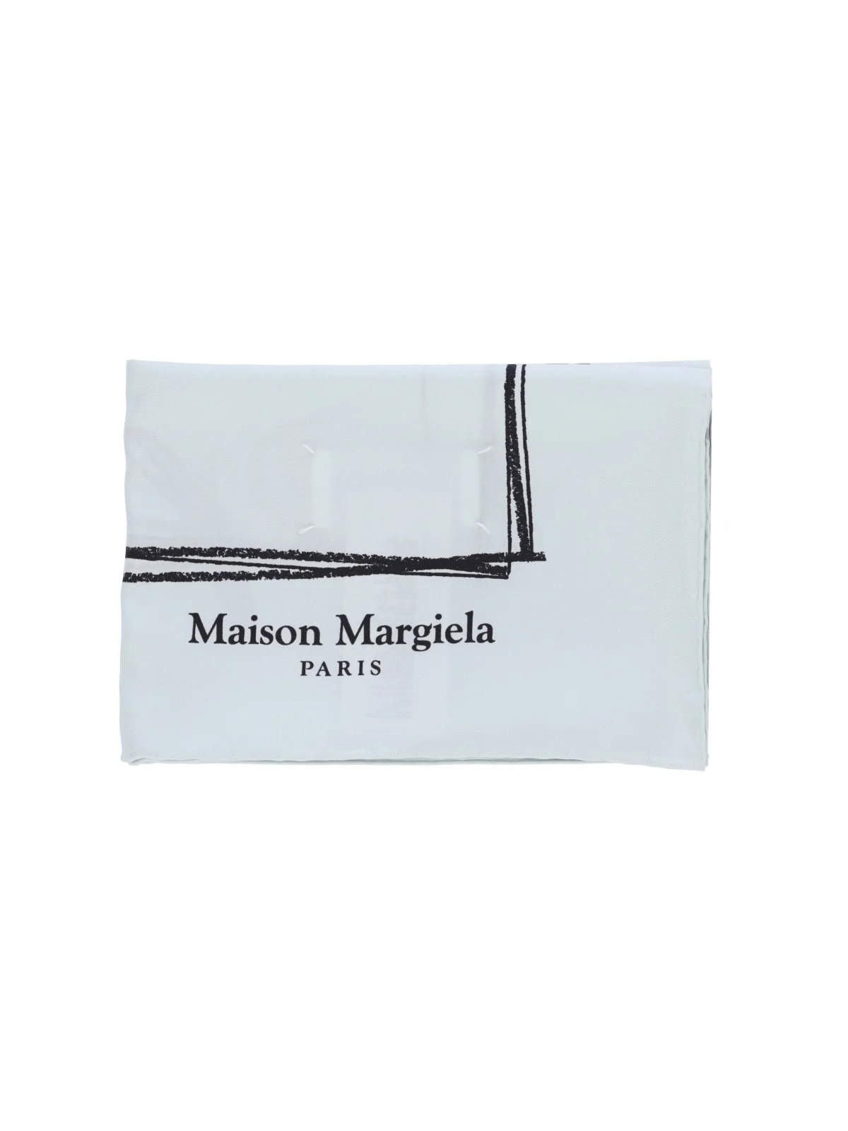 MAISON MARGIELA 'NUMERIC' SILK SCARF WITH SQUARE DESIGN, ALL-OVER NUMERIC PATTERN, CONTRAST LOGO. PRODUCT INFO PRODUCT CODE S51TF0049 M35820500S COMPOSITION: 100% SILK SIZE AND FIT: H 90 X W 90 CM MADE IN: ITALY