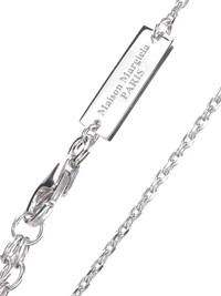MAISON MARGIELA STERLING SILVER NECKLACE WITH PENDANT, HOOK CLOSURE WITH LOGO PLATE DETAIL, RING PENDANT WITH TONE-ON-TONE EMBOSSED LOGO. PRODUCT INFO PRODUCT CODE SM1UU0066 P8865102 COMPOSITION: 100% SILVER MADE IN: ITALY