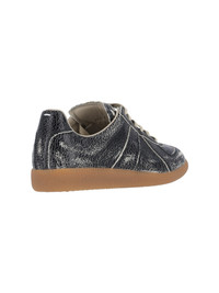 MAISON MARGIELA 'REPLICA' SNEAKERS IN BLACK CRAQUELE LEATHER WITH ROUND TOE, LACE-UP CLOSURE, 'NUMERIC' LOGO PATCH ON THE TONGUE, ICONIC WHITE STITCHING ON THE BACK, HONEY RUBBER SOLE. PRODUCT INFO PRODUCT CODE S57WS0517 P7424H8328 COMPOSITION: 100% CALF LEATHER MADE IN: ITALY - SOLE: 100% RUBBER