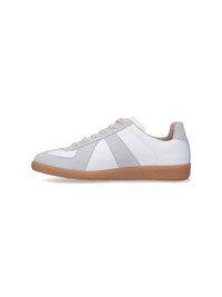 MAISON MARGIELA 'REPLICA' SNEAKERS, LEATHER, WHITE, GREY SUEDE DETAILS, ROUND TOE, LACE CLOSURE, LOGO ON TONGUE, BROWN RUBBER SOLE. PRODUCT INFO PRODUCT CODE S58WS0109 P1895T1016 - 100% LEATHER - SOLE: 100% RUBBER - MADE IN ITALY - S58WS0109 P1895-T1016 MADE IN: ITALY