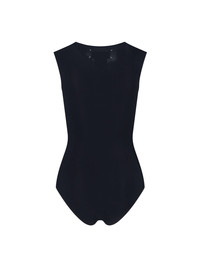 MAISON MARGIELA STRETCH BODYSUIT IN BLACK STRETCH NYLON WITH ROUND NECKLINE, SLEEVELESS, WHITE 'FOUR STITCHES' ON THE BACK, SNAP BUTTON CLOSURE. PRODUCT INFO PRODUCT CODE S51NA0065 S20518900 COMPOSITION: 73% POLYAMIDE, 27% ELASTANE SIZE AND FIT: SLIM VESTIMIBILITY MADE IN: ITALY