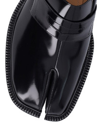 MAISON MARGIELA TABI LEATHER LOAFERS IN BLACK SHINY LEATHER WITH TABI DETAIL ROUND TOE CAP, ICONIC WHITE STITCHING AT THE BACK, SLIP-ON FIT, AND A RUBBER SOLE. PRODUCT INFO PRODUCT CODE S57WR0139 P3827H8396 - 100% LEATHER - SOLE: 100% RUBBER MADE IN: ITALIA