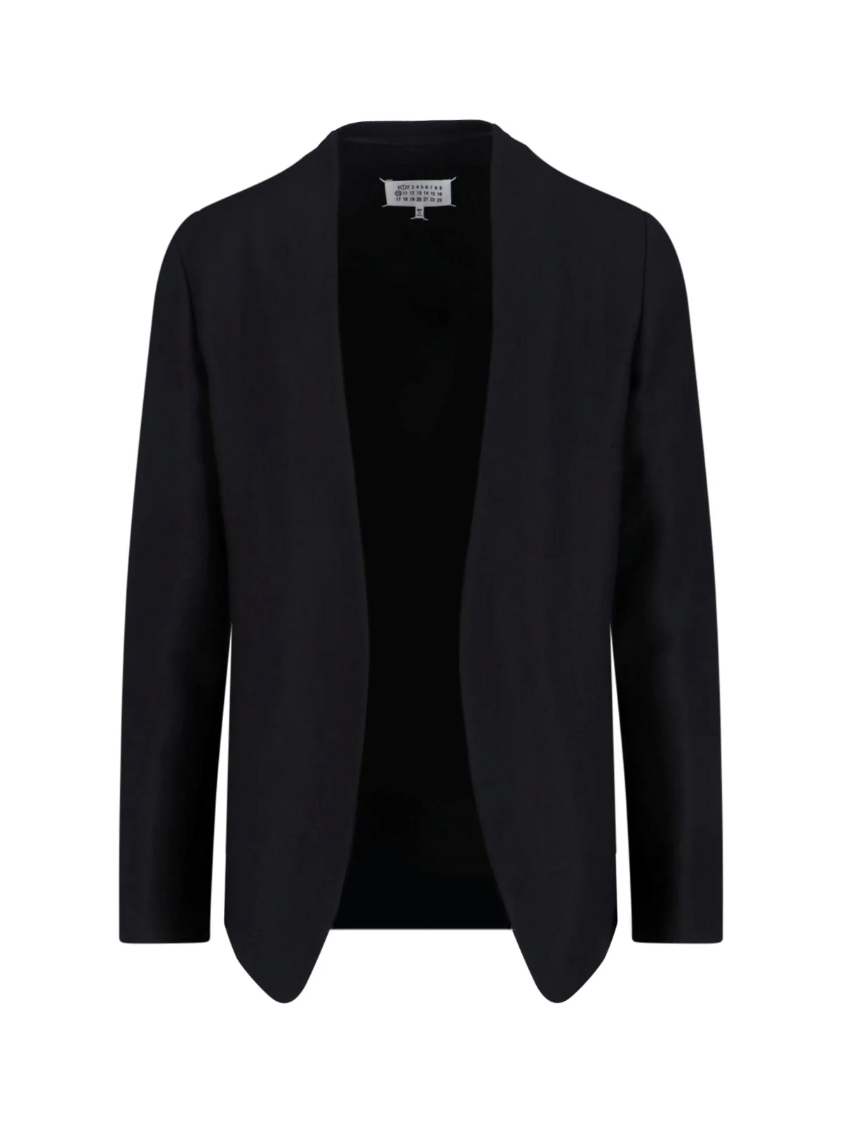 MAISON MARGIELA VIRGIN WOOL BLAZER IN BLACK WITH LONG SLEEVES, CONTRAST EMBROIDERED "FOUR STITCHES" LOGO ON THE BACK, CURVED HEM ON THE FRONT, STRAIGHT BACK. PRODUCT INFO PRODUCT CODE S50BN0318 S47782900 COMPOSITION: 100% VIRGIN WOOL SIZE AND FIT: REGULAR FIT MADE IN: ITALY