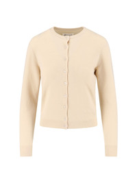 MAISON MARGIELA WOOL CREAM CARDIGAN WITH CREW NECK, BUTTON CLOSURE, RIBBED TRIMS, FOUR STITCHES STITCHING AT THE BACK, STRAIGHT HEM. PRODUCT INFO PRODUCT CODE S51HP0019 M13144104 COMPOSITION: 100% WOOL SIZE AND FIT: REGULAR FIT MADE IN: ITALY