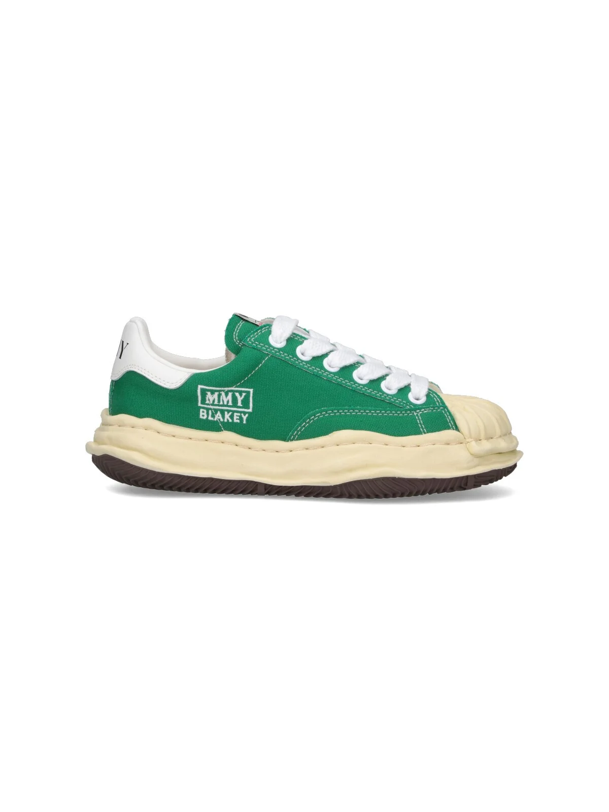 MAISON MIHARA YASUHIRO BLAKEY VL OG SOLE SNEAKERS IN GREEN COTTON WITH ROUND TOE, LACES, SIDE LOGO, CONTRASTING BACK TAB, LOGO TAG ON TONGUE, CONTRAST RUBBER SOLE. PRODUCT INFO PRODUCT CODE A09FW732CL GREEN COMPOSITION: 100% COTTON MADE IN: CHINA - SOLE: 100% RUBBER
