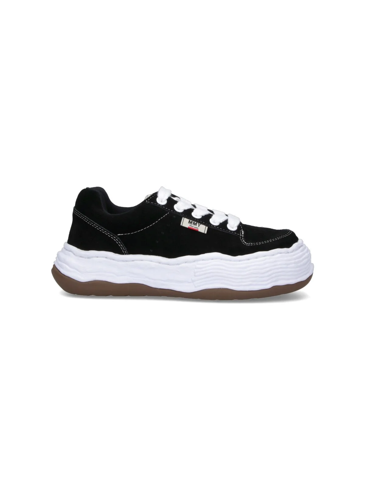 MAISON MIHARA YASUHIRO "OLIVER" LOW-TOP SNEAKERS IN BLACK CALF LEATHER WITH LACE-UP CLOSURE, ROUND TOE, FRONT AND SIDE LOGO LABEL DETAIL, CONTRAST RUBBER SOLE. PRODUCT INFO PRODUCT CODE A15FW702BLACK COMPOSITION: 100% CALF LEATHER MADE IN: CHINA - SOLE: 100% RUBBER