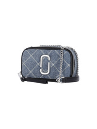 MARC JACOBS "THE BI-COLOR SNAPSHOT" CROSSBODY BAG IN LIGHT BLUE DENIM WITH BLACK DETAILS, ADJUSTABLE AND REMOVABLE METAL SHOULDER STRAP, DOUBLE ZIP CLOSURE, EMBOSSED LOGO ON THE TOP, SILVER METAL LOGO ON THE FRONT, FLAT BACK POCKET, INNER FLAT POCKET, MAIN INNER COMPARTMENT. PRODUCT INFO PRODUCT CODE 2P5HCR013H03416 COMPOSITION: 100% COTTON SIZE AND FIT: H 11 X W 18 X D 6 CM MADE IN: VIETNAM - STRAP DROP: 68 CM