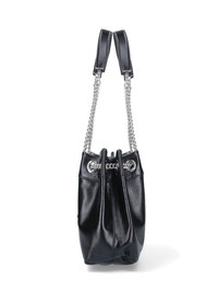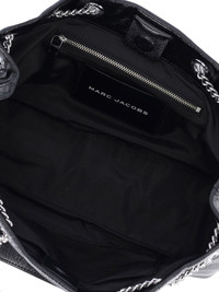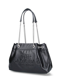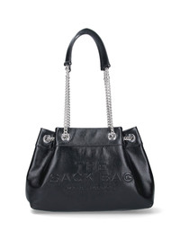 MARC JACOBS THE CHAIN SACK SMALL BLACK LEATHER BAG WITH TWO SILVER METAL AND LEATHER CHAIN SLIDING HANDLES, CONVERTIBLE SHOULDER STRAP DETAIL, MAGNETIC CLOSURE, EMBOSSED LOGO ON THE FRONT, BACK LOGO PATCH, INNER CARD SLOT, INNER ZIP POCKET, MAIN INNER COMPARTMENT. PRODUCT INFO PRODUCT CODE 2P5HSH030H02001 COMPOSITION: 100% LEATHER SIZE AND FIT: H 21 X W 30 X D 12 CM MADE IN: VIETNAM - TRIMS: 100% LEATHER - HANDLE DROP: 26 CM