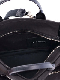 MARC JACOBS THE MEDIUM CARGO TOTE BAG IN BLACK COTTON WITH TWO TOP HANDLES, MAGNETIC FLAP CLOSURE, EMBOSSED LOGO ON THE FRONT, MAXI FRONT CARGO ZIP POCKETS, SIDE STRAP, BACK LOGO PATCH, INNER CARD SLOT, TWO INNER FLAT POCKETS, INNER ZIP POCKET, AND MAIN INNER COMPARTMENT. PRODUCT INFO PRODUCT CODE 2P5HTT007H03001 COMPOSITION: 100% COTTON SIZE AND FIT: H 26 X W 33 X D 15 CM MADE IN: VIETNAM - HANDLE DROP: 12 CM