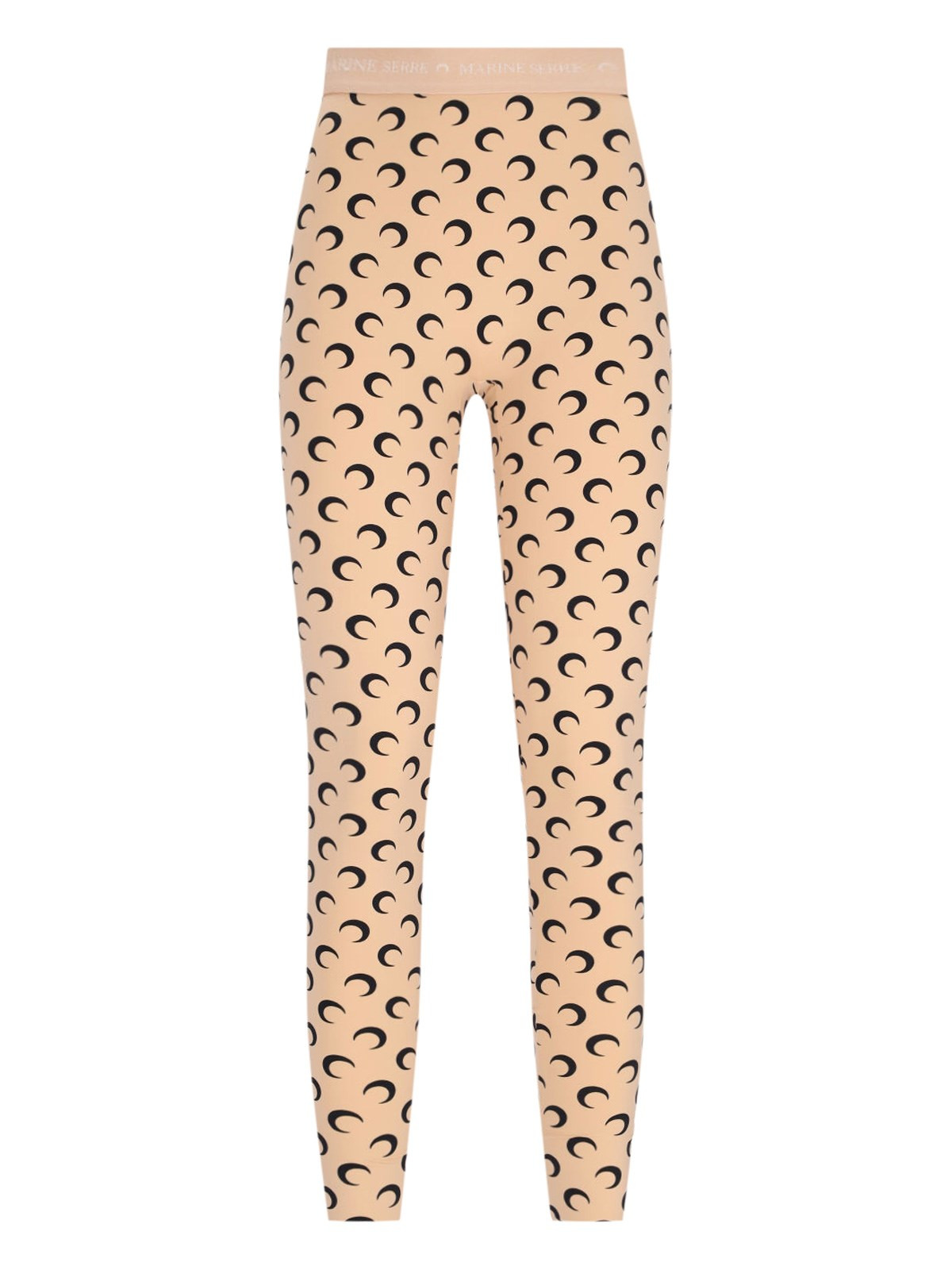 MARINE SERRE 'MOON' LEGGINGS IN BEIGE STRETCH NYLON WITH BLACK 'MOON' LOGO PRINT PATTERN, HIGH ELASTIC WAISTBAND, EMBOSSED LOGO DETAIL, STIRRUP ON THE HEM, STRAIGHT LEG. PRODUCT INFO PRODUCT CODE WPA111A CJER0001TA10 COMPOSITION: 88% RECYCLED POLYAMIDE, 12% RECYCLED ELASTANE SIZE AND FIT: SLIM FIT MADE IN: PORTUGAL - PRODUCT MADE FROM RECYCLED MATERIALS