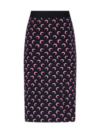MARINE SERRE MOON MIDI SKIRT IN BLACK STRETCH FABRIC WITH ALL-OVER PRINTED "MOON" LOGO PATTERN, ELASTIC MID WAISTBAND, EMBOSSED LOGO ELASTIC WAISTBAND, STRAIGHT HEM. PRODUCT INFO PRODUCT CODE WSK123A CJER0001BK90 COMPOSITION: 86% POLYAMIDE, 12% ELASTANE SIZE AND FIT: SLIM FIT MADE IN: PORTUGAL