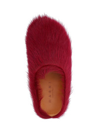MARNI "FUSSBETT" MULES IN RED CALF HAIR WITH ROUND TOE, SLIP-ON FIT, LOGO DETAIL ON THE UPPER, RUBBER SOLE. PRODUCT INFO PRODUCT CODE SBMR000600 P412200C33 COMPOSITION: 100% CALF LEATHER MADE IN: ITALY - SOLE: 100% RUBBER