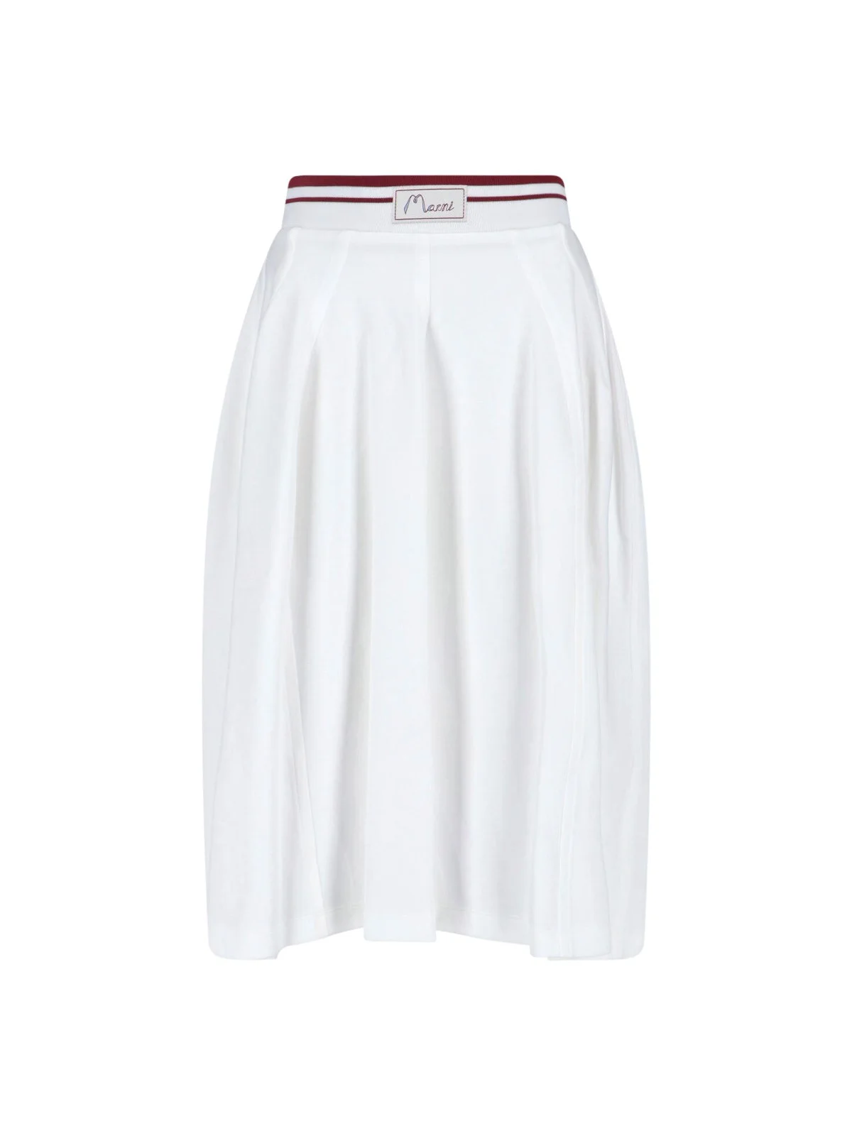 MARNI LOGO MIDI SKIRT IN WHITE COTTON JERSEY WITH ELASTIC MID WAIST, CONTRASTING LOGO PATCH AT THE FRONT, STRAIGHT HEM. PRODUCT INFO PRODUCT CODE GOJE0804LX UTC61300W01 COMPOSITION: 80% COTTON, 20% POLYAMIDE SIZE AND FIT: REGULAR FIT MADE IN: PORTUGAL