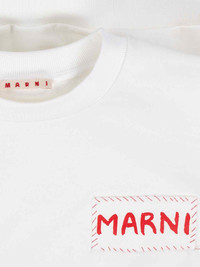 MARNI LOGO SWEATSHIRT IN WHITE COTTON WITH CREWNECK, RIBBED TRIM, CHEST LOGO PATCH, ELASTICATED CUFFS AND WAIST, STRAIGHT HEM. PRODUCT INFO PRODUCT CODE FUMU0074X1 UTC27500W02 COMPOSITION: 100% COTTON SIZE AND FIT: REGULAR FIT MADE IN: ITALY