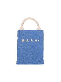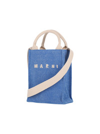 MARNI LOGO MINI HANDBAG IN LIGHT BLUE COTTON BLEND, TWO HANDLES, SHOULDER STRAP, CREAM LOGO EMBROIDERY ON THE FRONT, AND A SINGLE INNER COMPARTMENT. PRODUCT INFO PRODUCT CODE SHMP0145U1 P853600B60 COMPOSITION: 52% COTTON, 48% POLYAMIDE SIZE AND FIT: H 17 X W 22 CM MADE IN: ITALY