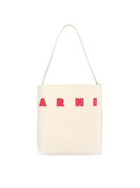 MARNI 'MUSEO' SMALL CREAM LEATHER TOTE BAG, TOP HANDLE, RED LOGO ON THE FRONT, INNER ZIP POCKET, MAIN INNER COMPARTMENT. PRODUCT INFO PRODUCT CODE SHMP0111U0 P6483ZO721 COMPOSITION: 100% LEATHER SIZE AND FIT: H 28 X W 26 X D 11 CM MADE IN: ITALIA