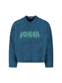 MARTINE ROSE MOHAIR SWEATER WITH BLUE V-NECK, RIBBED TRIMS, GREEN MAXI FRONT LOGO, STRAIGHT HEM. PRODUCT INFO PRODUCT CODE 948YA01414GRN COMPOSITION: 32% SUPERFINE ALPACA, 32% EXTRAFINE MERINO, 30% POLYAMIDE, 6% ELASTANE SIZE AND FIT: REGULAR FIT MADE IN: CHINA
