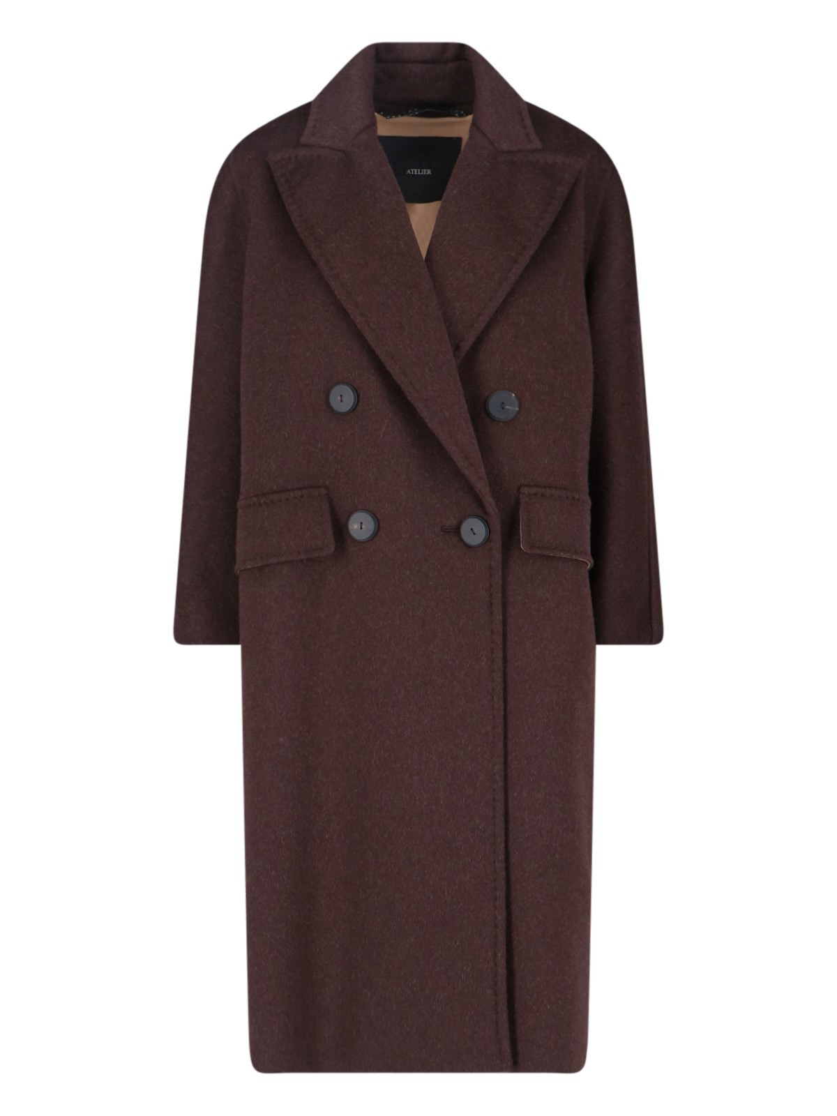 MAX MARA 'ANGUS' DOUBLE-BREASTED COAT IN DARK BROWN CASSHMERE BLEND WITH PEAK LAPELS, BUTTON CLOSURE, TWO SIDE POCKETS, INNER BUTTON POCKET, STRAIGHT HEM. PRODUCT INFO PRODUCT CODE 2521016105600001 COMPOSITION: 50% CASHMERE, 40% ALPACA, 10% WOOL SIZE AND FIT: SOFT FIT MADE IN: ITALY