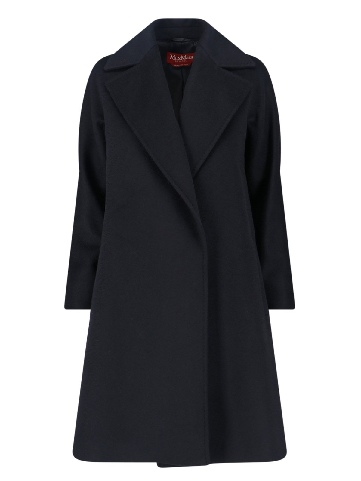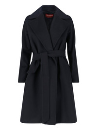 MAX MARA DRAVENNA COAT IN BLACK VIRGIN WOOL WITH PEAK LAPELS, ADJUSTABLE AND REMOVABLE BELT AT THE WAIST, TWO SIDE POCKETS, AND STRAIGHT HEM. PRODUCT INFO PRODUCT CODE 2526016152600013 COMPOSITION: 100% VIRGIN WOOL SIZE AND FIT: SOFT FIT MADE IN: ITALY