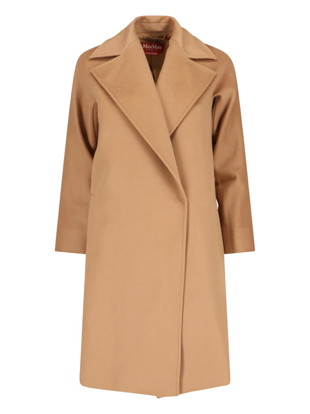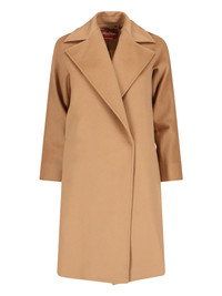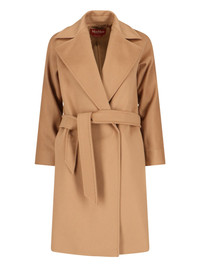 MAX MARA DRAVENNA COAT IN BROWN VIRGIN WOOL WITH PEAK LAPELS, ADJUSTABLE AND REMOVABLE BELT AT THE WAIST, TWO SIDE POCKETS, AND STRAIGHT HEM. PRODUCT INFO PRODUCT CODE 2526016152600006 COMPOSITION: 100% VIRGIN WOOL SIZE AND FIT: SOFT FIT MADE IN: ITALY