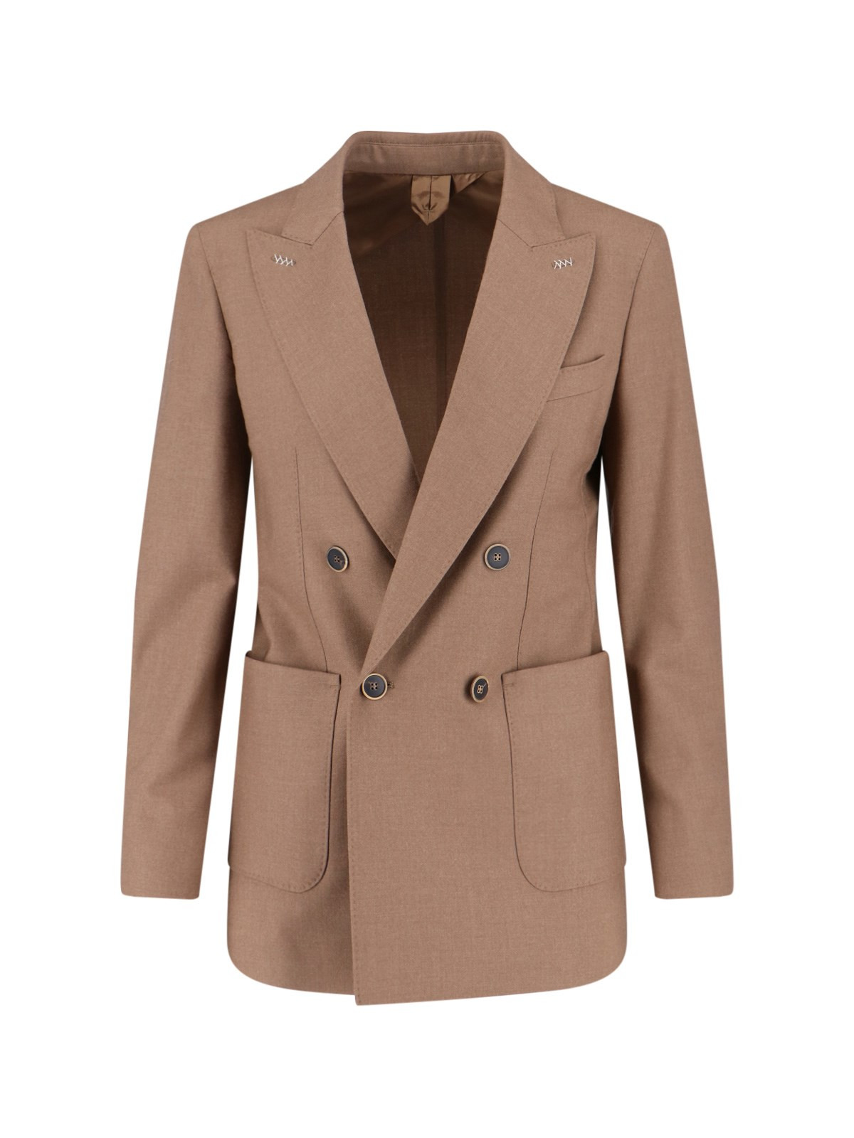 MAX MARA 'HARALD' DOUBLE-BREASTED BLAZER IN BROWN CASHMERE WITH PEAK LAPELS, HORN BUTTON CLOSURE, CHEST POCKET, TWO SIDE POCKETS, ONE INNER BUTTON POCKET, BUTTON CUFFS, STRAIGHT HEM. PRODUCT INFO PRODUCT CODE 2521046131600005 COMPOSITION: 96% CASHMERE, 4% ELASTANE SIZE AND FIT: REGULAR FIT MADE IN: ITALY - TRIMS: 100% HORN