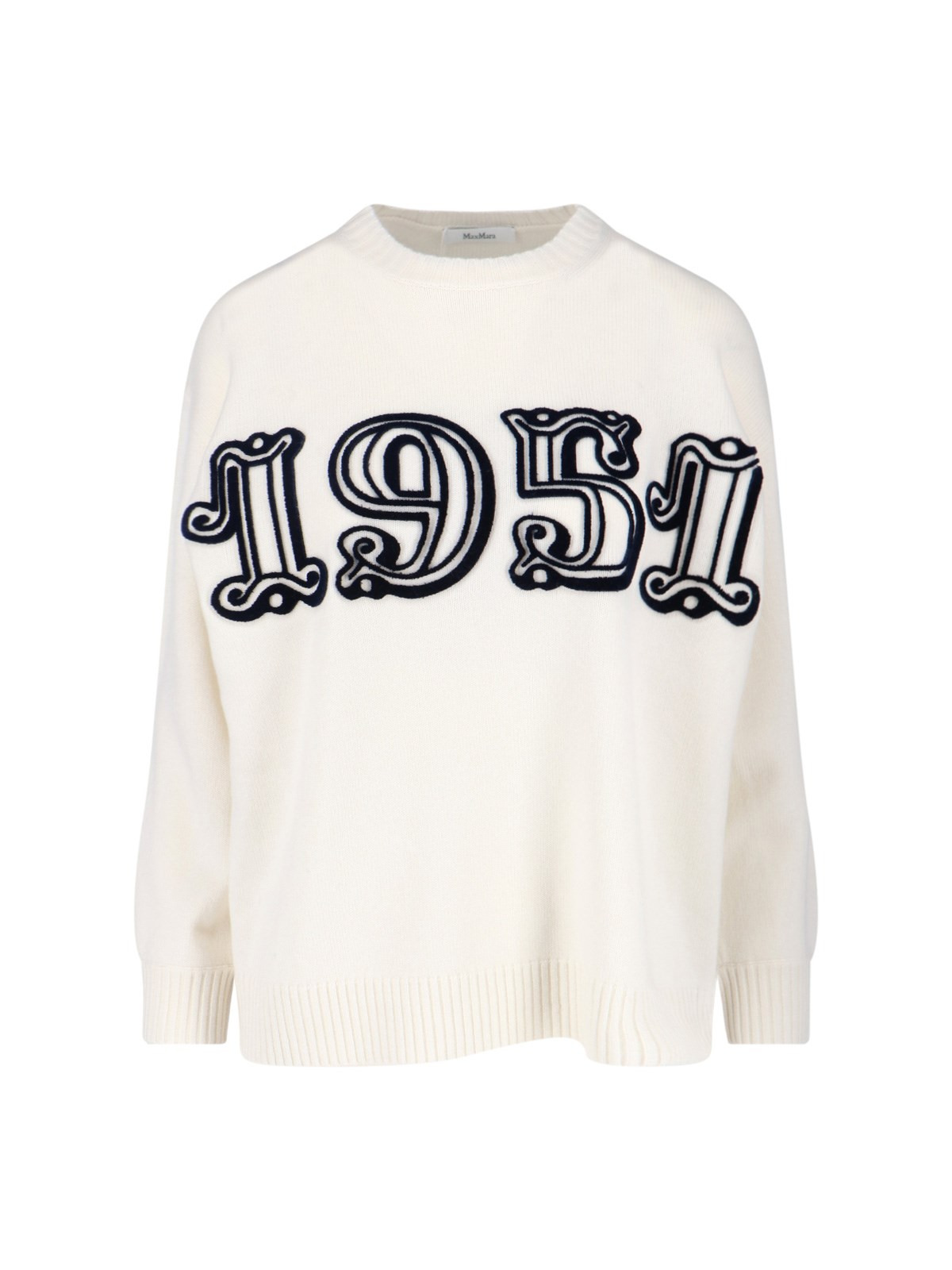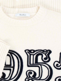 MAX MARA LOGO SWEATER IN WHITE WOOL AND CASHMERE BLEND WITH CREW NECK, CONTRAST MAXI LOGO EMBROIDERY AT THE FRONT, RIBBED TRIMS, STRAIGHT HEM. PRODUCT INFO PRODUCT CODE 2521366212600014 COMPOSITION: 70% WOOL, 30% CASHMERE SIZE AND FIT: OVERSIZED FIT MADE IN: CHINA
