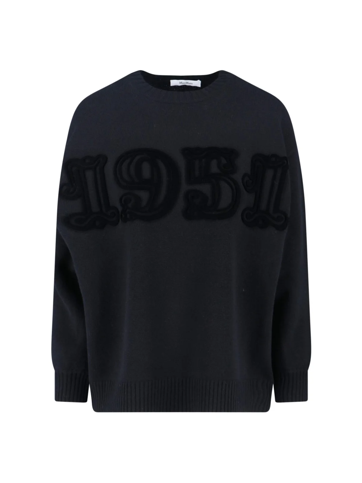 MAX MARA LOGO SWEATER IN BLACK WOOL AND CASHMERE BLEND WITH CREWNECK, TONE-ON-TONE MAXI LOGO EMBROIDERY ON THE FRONT, RIBBED TRIM, STRAIGHT HEM. PRODUCT INFO PRODUCT CODE 2521366212600041 COMPOSITION: 70% WOOL, 30% CASHMERE SIZE AND FIT: OVERSIZED FIT MADE IN: CHINA