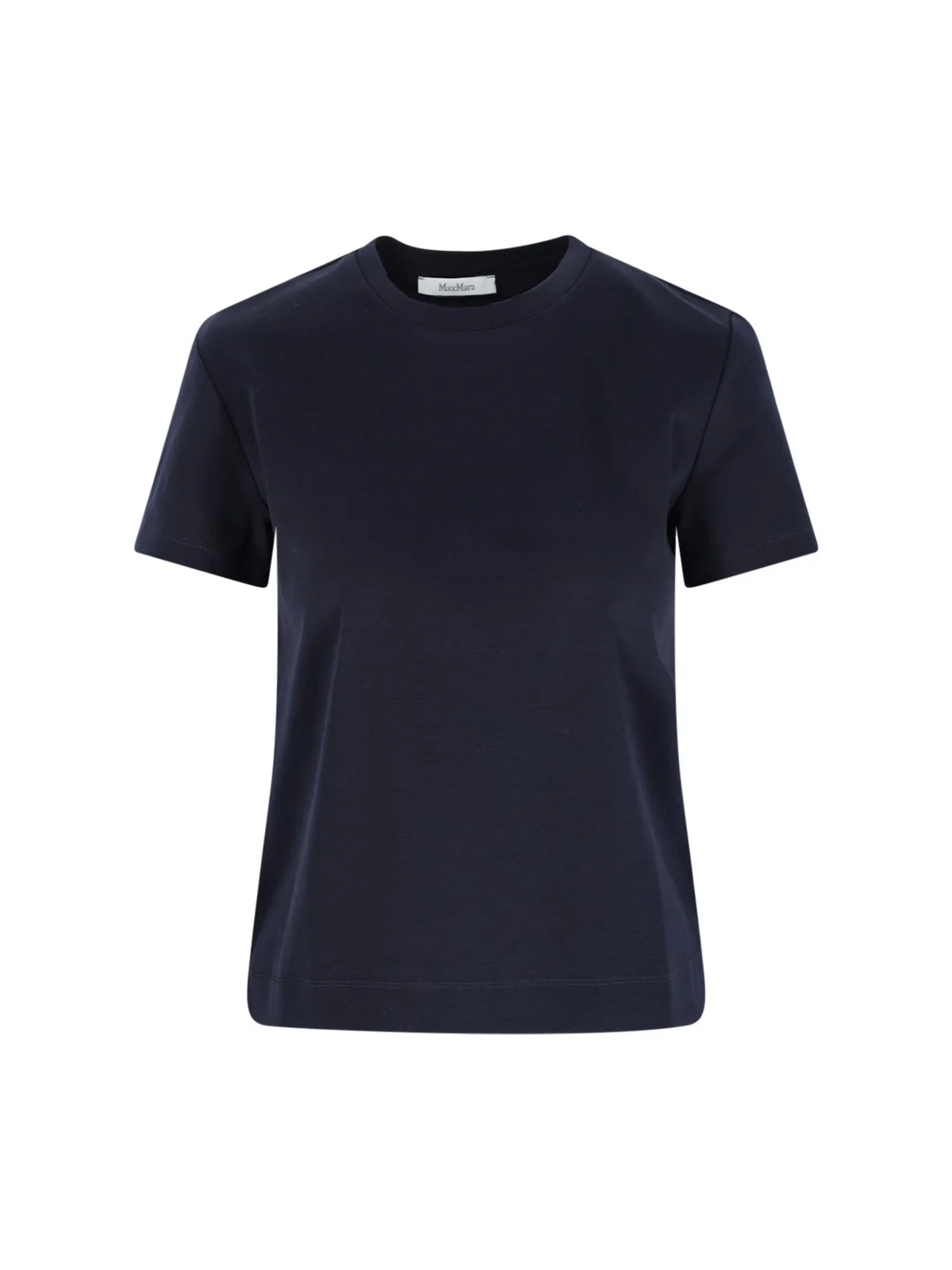 MAX MARA LOGO T-SHIRT IN DARK BLUE COTTON WITH SHORT SLEEVES, LOGO EMBROIDERY AT THE BACK, STRAIGHT HEM. PRODUCT INFO PRODUCT CODE 2611971028600002 COMPOSITION: 100% COTTON SIZE AND FIT: REGULAR FIT MADE IN: CHINA