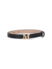MAX MARA MONOGRAM BELT IN BLACK LEATHER WITH GOLD METAL LOGO BUCKLE ON THE FRONT, ADJUSTABLE. PRODUCT INFO PRODUCT CODE 2524506011600007 COMPOSITION: 100% LEATHER SIZE AND FIT: HEIGHT 1.5 CM MADE IN: ITALY