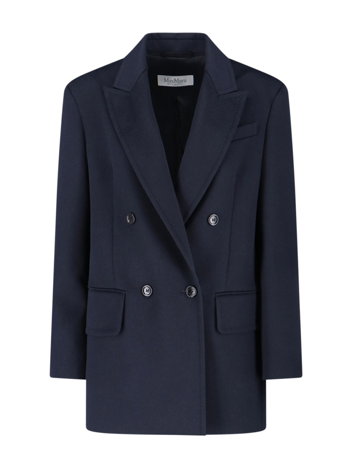 MAX MARA 'OLIMPIA' DOUBLE-BREASTED BLAZER IN NAVY BLUE CAMEL WOOL, SPEAR LAPELS, BUTTON CLOSURE, CHEST POCKET, TWO SIDE POCKETS, BUTTON CUFFS, STRAIGHT HEM. PRODUCT INFO PRODUCT CODE 2521046012600005 COMPOSITION: 100% CAMEL WOOL SIZE AND FIT: REGULAR FIT MADE IN: ITALY