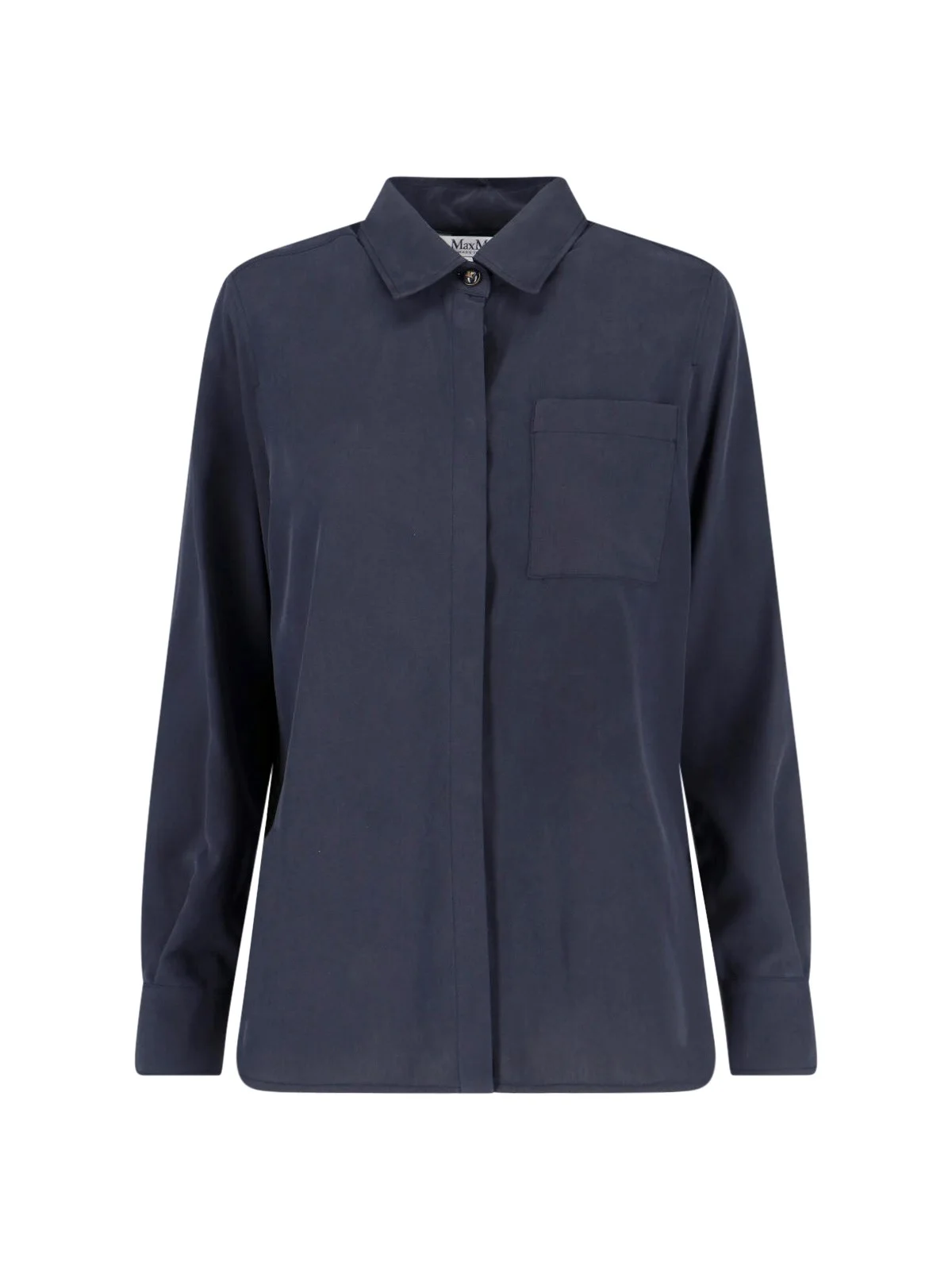 MAX MARA 'SIAMESE' NAVY BLUE SILK SHIRT WITH CLASSIC COLLAR, FRONT BUTTON CLOSURE, LONG SLEEVES, FRONT POCKET, BUTTON CUFFS, STRAIGHT HEM. PRODUCT INFO PRODUCT CODE 2611111151600010 COMPOSITION: 100% SILK SIZE AND FIT: REGULAR FIT MADE IN: ITALY