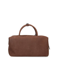 MAX MARA "HOLDALL" CALF SUEDE MEDIUM BAG, BROWN, TWO HANDLES, REMOVABLE PADLOCK CHARM DETAIL, REMOVABLE SHOULDER STRAP, ZIPPER CLOSURE, ONE INTERIOR FLAT POCKET, ONE INTERIOR SINGLE COMPARTMENT. PRODUCT INFO PRODUCT CODE 2524516151600002 COMPOSITION: 100% CALFSKIN LEATHER SIZE AND FIT: H 17 X W 34 X D 17.5 CM MADE IN: ITALY