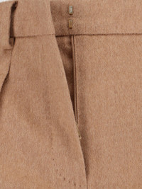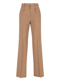 MAX MARA HIGH-WAISTED BROWN CAMEL WOOL TAILORED PANTS WITH BELT LOOPS, HOOK AND ZIP CLOSURE, FRONT PIN TUCKS, TWO SIDE POCKETS, TWO BACK POCKETS, STRAIGHT LEG. PRODUCT INFO PRODUCT CODE 2521136072600001 COMPOSITION: 100% CAMEL WOOL SIZE AND FIT: REGULAR FIT MADE IN: ITALY