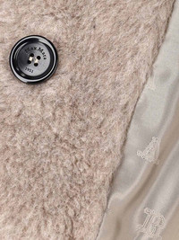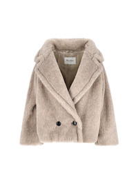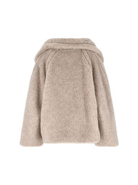 MAX MARA 'TEDDY BEAR ICON' CROP COAT IN BEIGE ALPACA AND CASHMERE BLEND WITH ALL-OVER TEDDY PATTERN, CLASSIC LAPELS, BUTTON CLOSURE, LONG SLEEVES, TWO FRONT WELT POCKETS, STRAIGHT HEM. PRODUCT INFO PRODUCT CODE 2611081051600006 COMPOSITION: 73% ALPACA, 26% CASHMERE, 11% SILK SIZE AND FIT: SOFT FIT MADE IN: ITALY - BUTTONS: 100% HORN