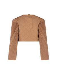 MAX MARA 'TEDDY' CROPPED VEST IN BROWN CAMEL WOOL BLEND WITH TEDDY WORKMANSHIP, WIDE PEAK LAPELS, HORN BUTTON CLOSURE, TWO SIDE POCKETS, REMOVABLE SLEEVES, BUTTON CLOSURE DETAIL, STRAIGHT HEM. PRODUCT INFO PRODUCT CODE 2521036012600001 COMPOSITION: 88% CAMEL WOOL, 12% SILK SIZE AND FIT: CROPPED FIT MADE IN: ITALY - TRIMS: 100% HORN