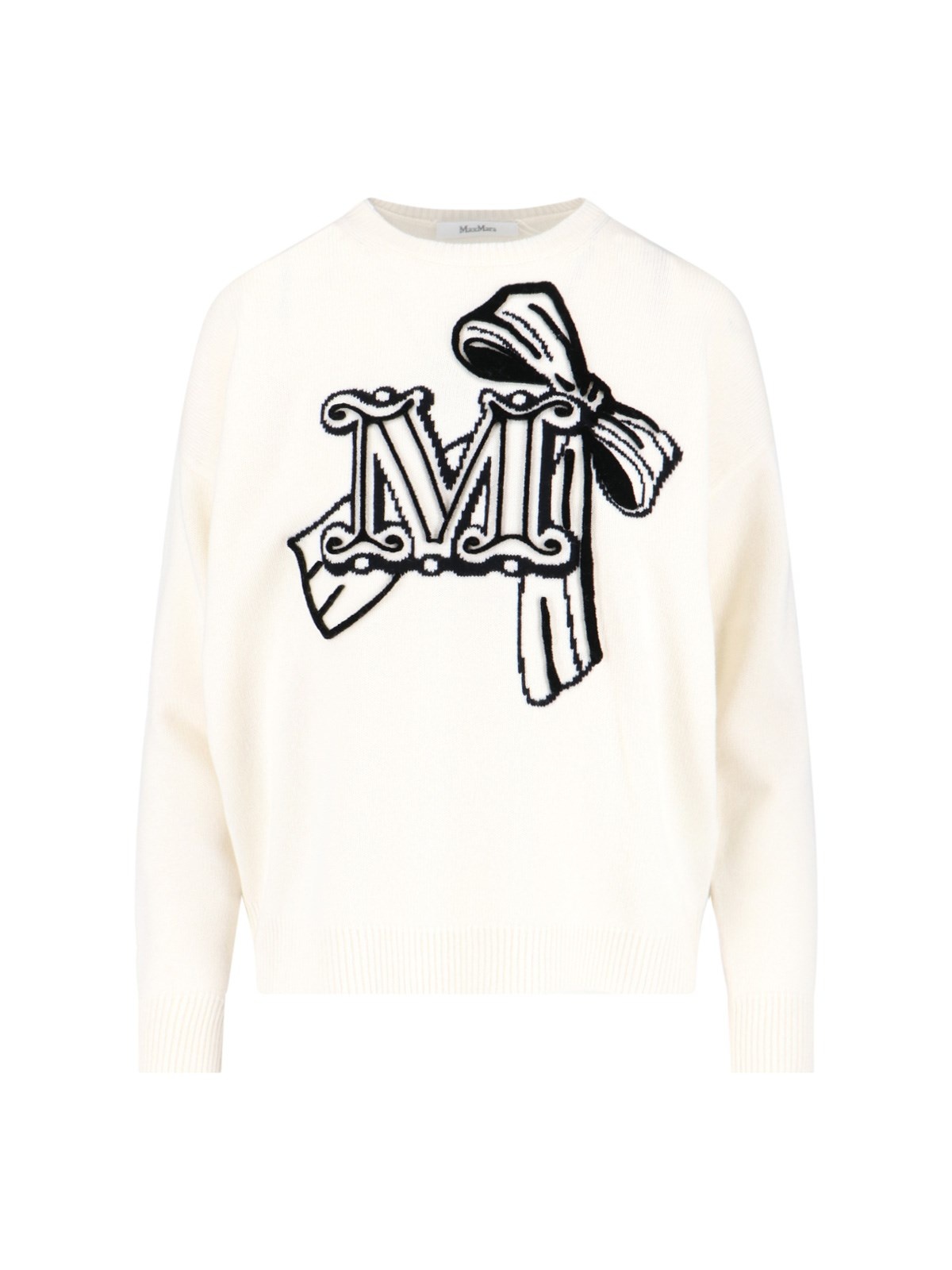 MAX MARA 'ZURLO' WOOL AND CASHMERE SWEATER WITH CREAM, CREW NECK, MAXI BLACK LOGO INTARSIA ON THE FRONT, RIBBED TRIMS, STRAIGHT HEM. PRODUCT INFO PRODUCT CODE 2521366011600008 COMPOSITION: 70% WOOL, 30% CASHMERE SIZE AND FIT: REGULAR FIT MADE IN: CHINA