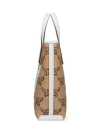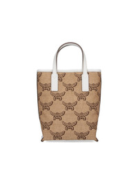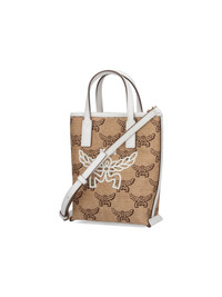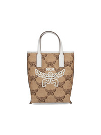 MCM LOGO TOTE BAG IN BEIGE COTTON BLEND WITH LEATHER TRIM, TWO HANDLES, ADJUSTABLE AND REMOVABLE SHOULDER STRAP, SNAP BUTTON CLOSURE, WHITE LOGO EMBROIDERY ON THE FRONT, TWO INTERIOR FLAT POCKETS, AND MAIN INNER COMPARTMENT. PRODUCT INFO PRODUCT CODE MWRFSAC03IN COMPOSITION: 51% COTTON, 37% LINEN, 12% POLYURETHANE SIZE AND FIT: H 19.5 X W 16 X D 7 CM MADE IN: SOUTH KOREA - TRIMS: 100% LEATHER