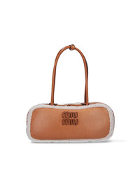 MIU MIU 'ARCADIE' SHEARLING BAG IN BROWN CALF LEATHER WITH PADDED DESIGN, ALL-OVER SHEARLING DETAIL, TWO HANDLES, ADJUSTABLE AND REMOVABLE SHOULDER STRAP, DOUBLE ZIP CLOSURE, REMOVABLE ZIP POUCH, TONAL LOGO ON THE FRONT, INNER ZIP POCKET, MAIN INNER COMPARTMENT. PRODUCT INFO PRODUCT CODE 5BB148 OOS 2CTTF036S COMPOSITION: 100% SHEEP LEATHER SIZE AND FIT: H 13 X W 29 X D 8 CM MADE IN: ITALY - HANDLE SPAN: 18 CM - TRIMS: 100% SHEARLING
