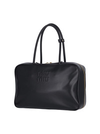 MIU MIU 'BEAU' BLACK LEATHER HANDBAG WITH TWO HANDLES, DOUBLE ZIP CLOSURE, EMBOSSED LOGO ON THE FRONT, TWO INNER ZIP POCKETS, MAIN INNER COMPARTMENT. PRODUCT INFO PRODUCT CODE 5BB117 MON 2CRWF0002 COMPOSITION: 100% CALF LEATHER SIZE AND FIT: H 23 X W 34 X D 10 CM