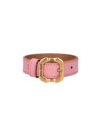LEATHER BRACELET WITH MIU MIU BUCKLE, PINK, GOLD METAL BUCKLE, ENGRAVED LOGO, ADJUSTABLE. PRODUCT INFO PRODUCT CODE 5IB715 AE6YF04VJ COMPOSITION: 100% CALF LEATHER SIZE AND FIT: HEIGHT 3.5CM MADE IN: ITALY