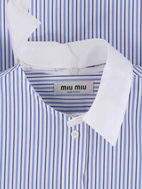 MIU MIU LOGO SHIRT IN WHITE COTTON WITH BLUE STRIPE PATTERN, REMOVABLE CLASSIC COLLAR, BUTTON CLOSURE, CONTRAST LOGO EMBROIDERY ON THE FRONT, CONTRASTING CUFFS, CURVED HEM. PRODUCT INFO PRODUCT CODE MK1972 OOO 174TF0W3B COMPOSITION: 100% COTTON SIZE AND FIT: REGULAR FIT MADE IN: ITALY