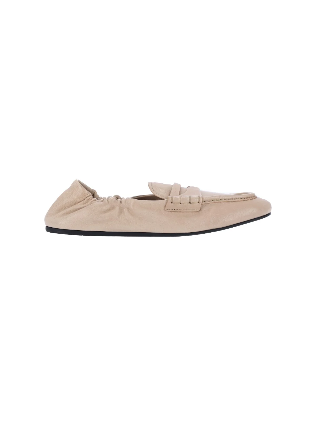 RUCHES LOAFERS IN MIU MIU BEIGE NAPPA LEATHER WITH ROUND TOE, TOP BAND, CONTRASTING LETTERING LOGO, RUBBER SOLE. PRODUCT INFO PRODUCT CODE 5D341E D005 EFXF0065 COMPOSITION: 100% LAMBSKIN MADE IN: ITALY - SOLE: 100% RUBBER
