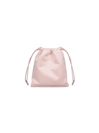 MIU MIU SATIN LOGO POUCH IN PINK SILK BLEND WITH LEATHER TRIM, DRAWSTRING CLOSURE, GOLD METAL LOGO ON THE FRONT, GOLD METAL INNER CLASP, SINGLE INNER COMPARTMENT. PRODUCT INFO PRODUCT CODE 5NG010 049F0615 COMPOSITION: 72% VISCOSE, 28% SILK SIZE AND FIT: H 21 X W 18 CM - TRIMS: 100% LEATHER