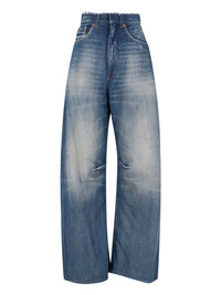 MM6 MAISON MARGIELA FRAYED WIDE BLUE COTTON JEANS WITH DISTRESSED WASH, HIGH WAIST, FRAYED TOP DETAIL, BELT LOOPS, BUTTON AND HOOK CLOSURE, FIVE POCKETS DESIGN, LOGO PATCH AT THE BACK, STITCHING DETAIL AT THE BACK, STRAIGHT LEG. PRODUCT INFO PRODUCT CODE S52LA0266 M30017962 COMPOSITION: 100% COTTON SIZE AND FIT: SOFT FIT MADE IN: ITALY