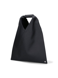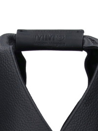 MM6 MAISON MARGIELA 'JAPANESE' SMALL HANDBAG IN BLACK HAMMERED LEATHER WITH HANDLE, ENGRAVED LOGO DETAIL, BUTTON CLOSURE, SIDE SNAP BUTTONS, CONTRASTING LOGO STITCHING AT THE BACK, SINGLE INNER COMPARTMENT. PRODUCT INFO PRODUCT CODE S54WD0043 P4344T8013 COMPOSITION: 100% LEATHER SIZE AND FIT: H 42 X W 34 X D 2 CM MADE IN: CHINA - HANDLE DROP: 12 CM