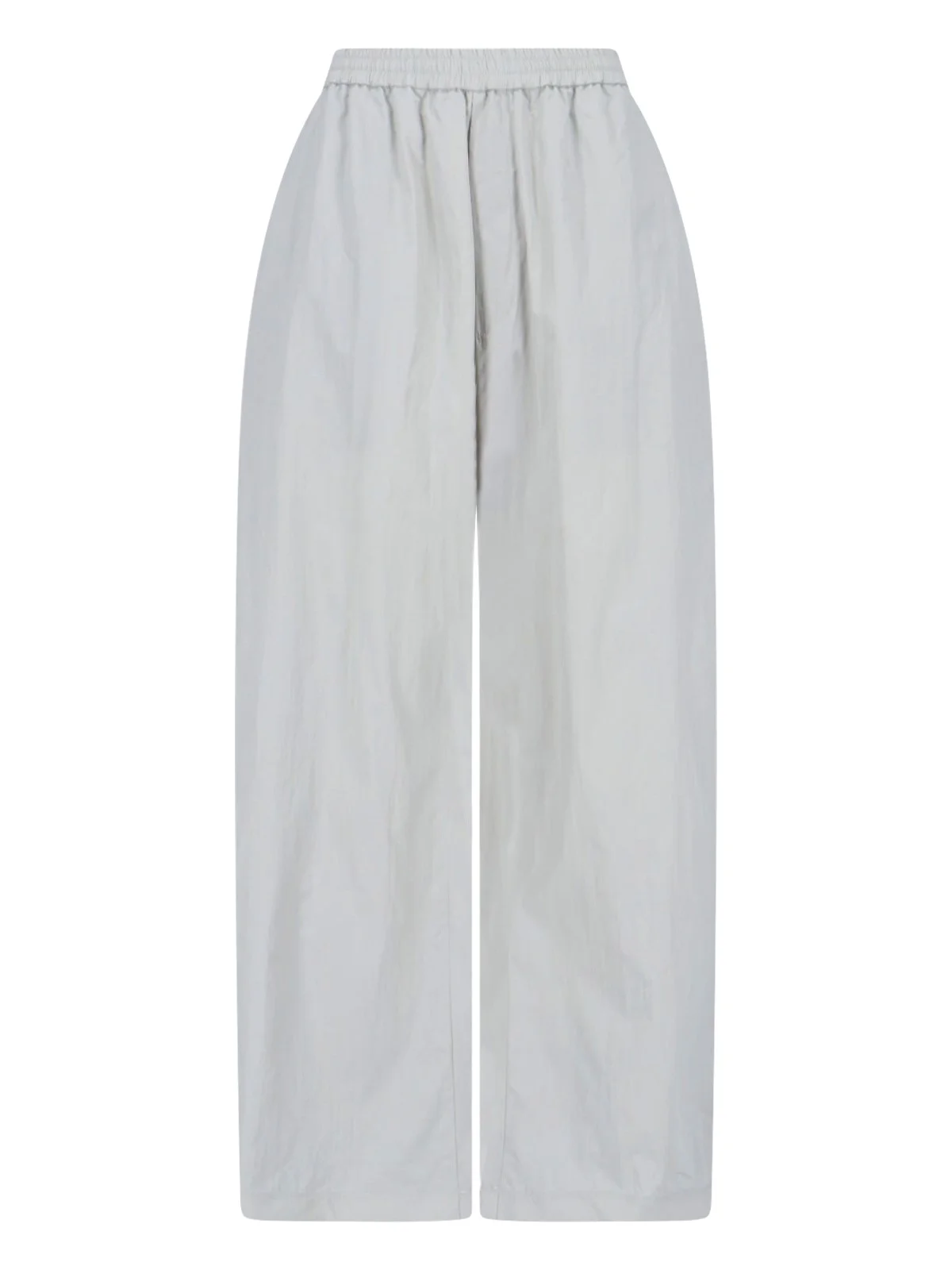 MAISON MARGIELA MM6 GREY FABRIC TRACK PANTS WITH HIGH ELASTIC WAISTBAND, TWO SLANTED SIDE POCKETS, BACK POCKET, WIDE LEG. PRODUCT INFO PRODUCT CODE S52KA0542 M35732850 COMPOSITION: 100% POLYAMIDE SIZE AND FIT: SOFT FIT MADE IN: ITALY